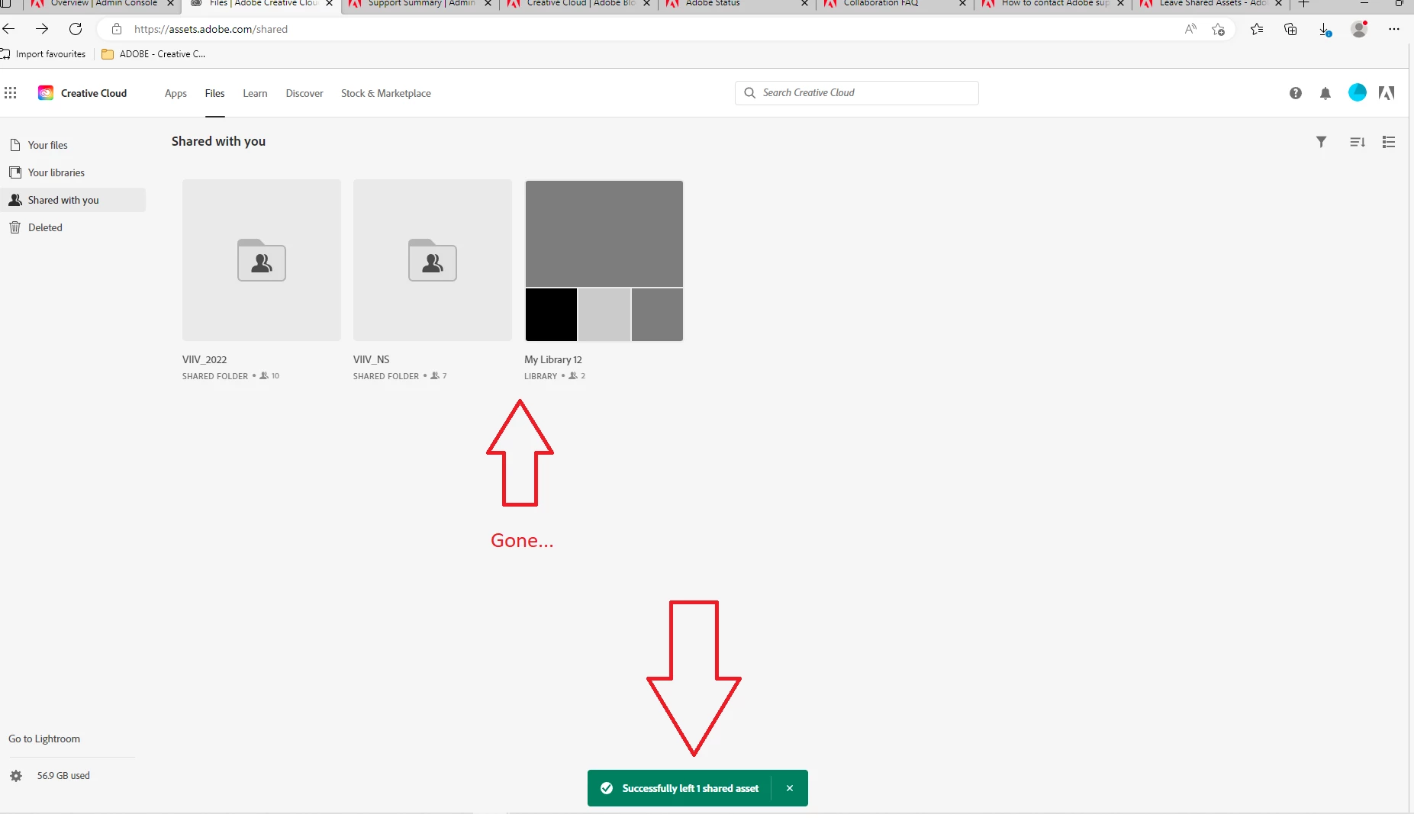 I and other Team users are trying to leave Shared Assets and after leaving the assets with a green pop saying everything went OK the assets are "reapearing" from the dead.
