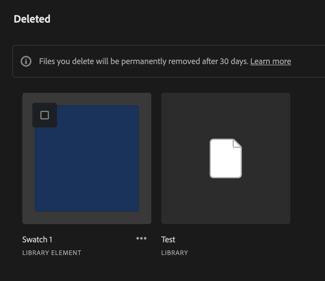 We already reviewed all the deleted items and ther are not there. Also I did a test to create a library, place elements and delete it and it does not appear in my deleted elements.