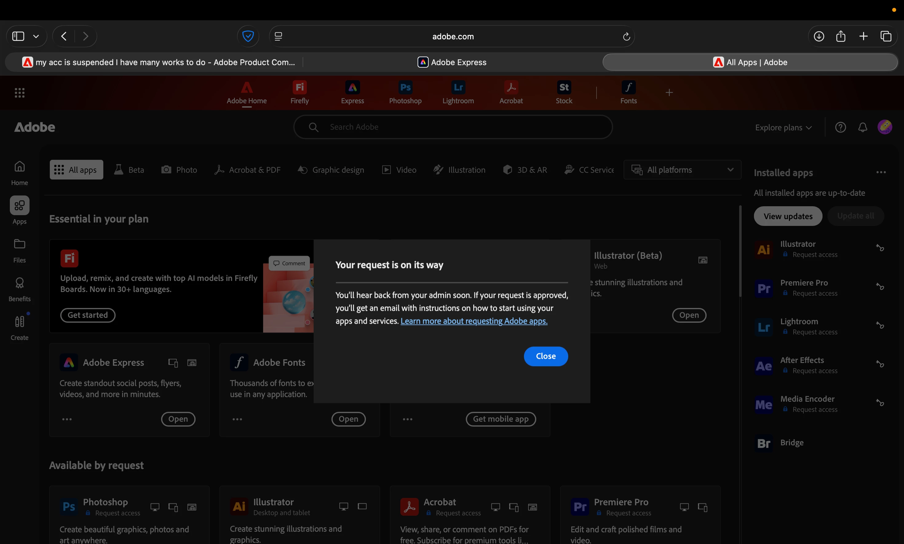 Thanks for sharing this. Could you please confirm if the issue you’re experiencing is associated with the same email ID you used to post this query? If so, please note that the date shown refers to your contract renewal date. However, if licenses have not yet been assigned to your account, you won’t be able to access the required Adobe apps. I recommend reaching out to your admin and requesting that they assign the appropriate license to you from the Admin Console.