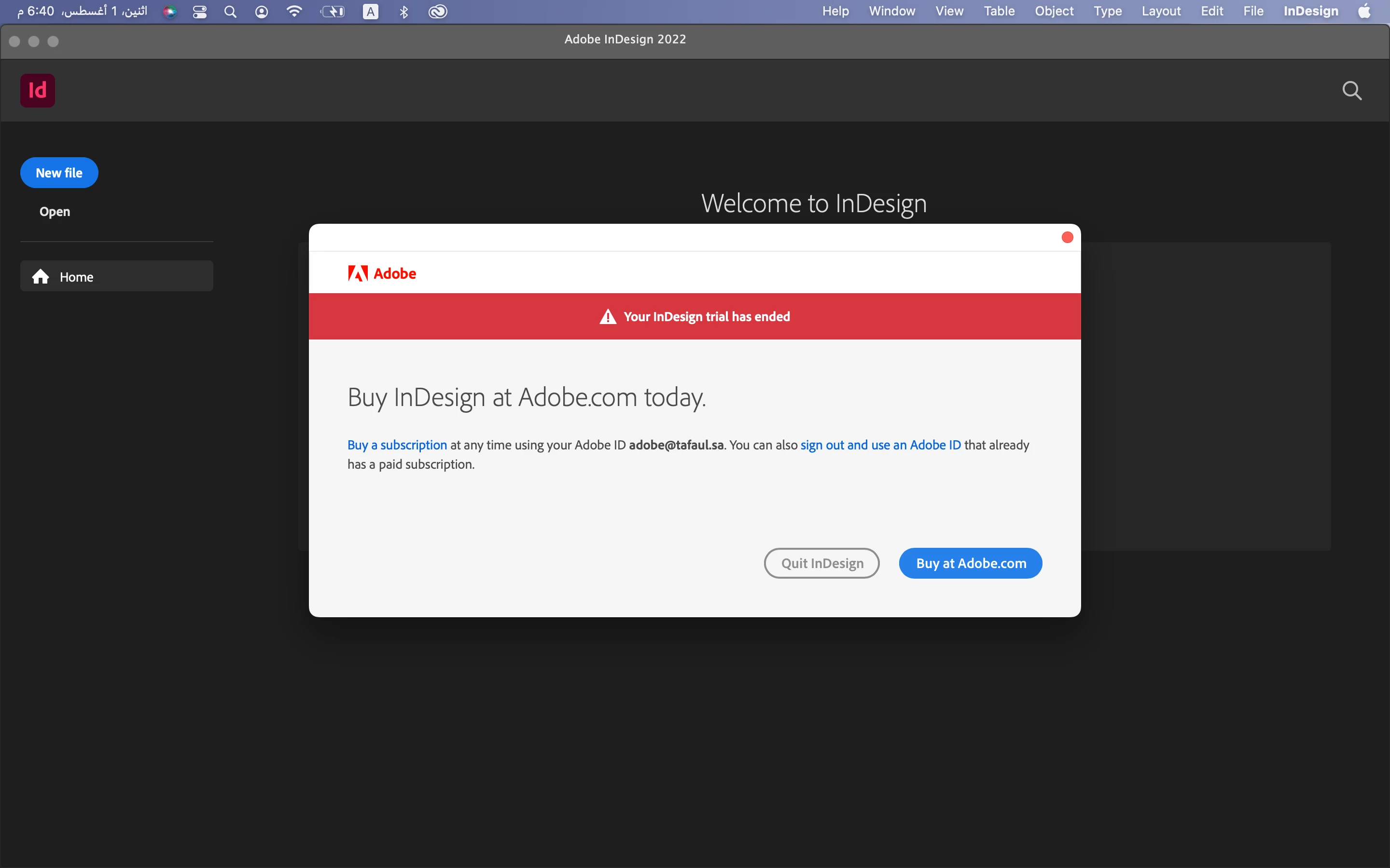 i bought indesighn fot desktop but i can't login my account to use