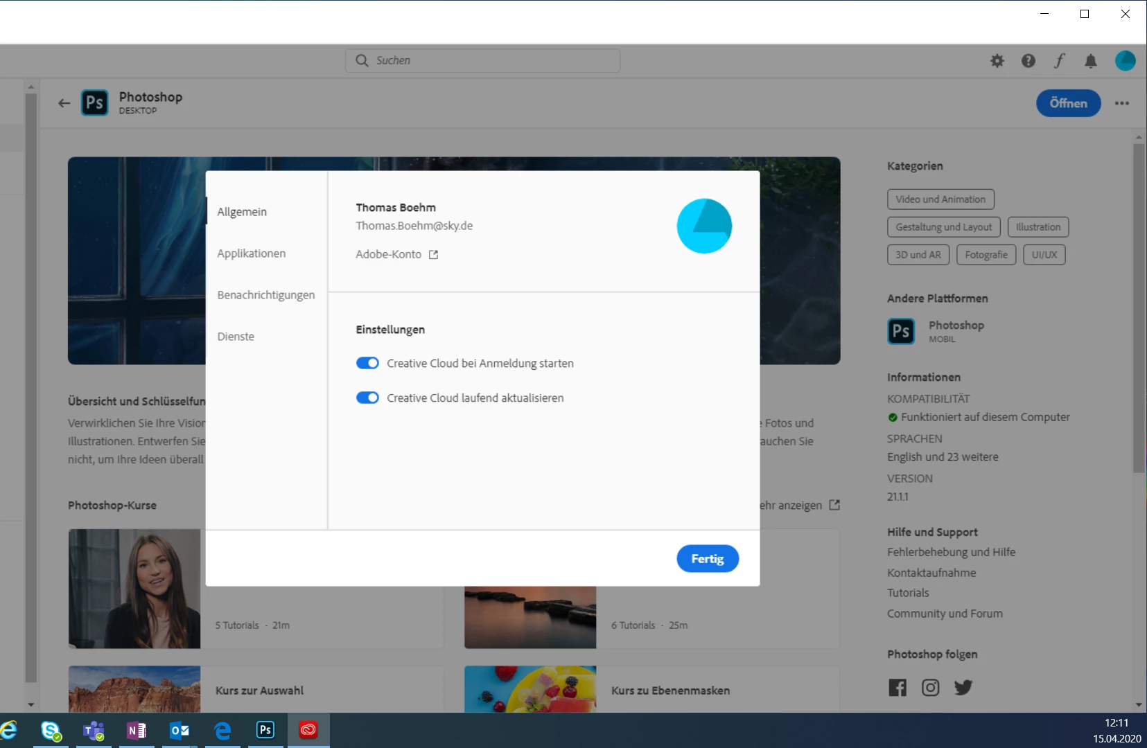 I want to share some folders over Creative Cloud cloud storage with my colleague so that they sync between our two computers. The problem is that my colleague doesn't have the option to sync files in the CC desktop app. He's on Win10 and doesn't have the little cloud icon in the top right corner. The settings menu also doesn't even mention anything about file syncing. We checked on creativecloud.adobe.com though - just like me, he has 100GB thru our Adobe for Teams plan.