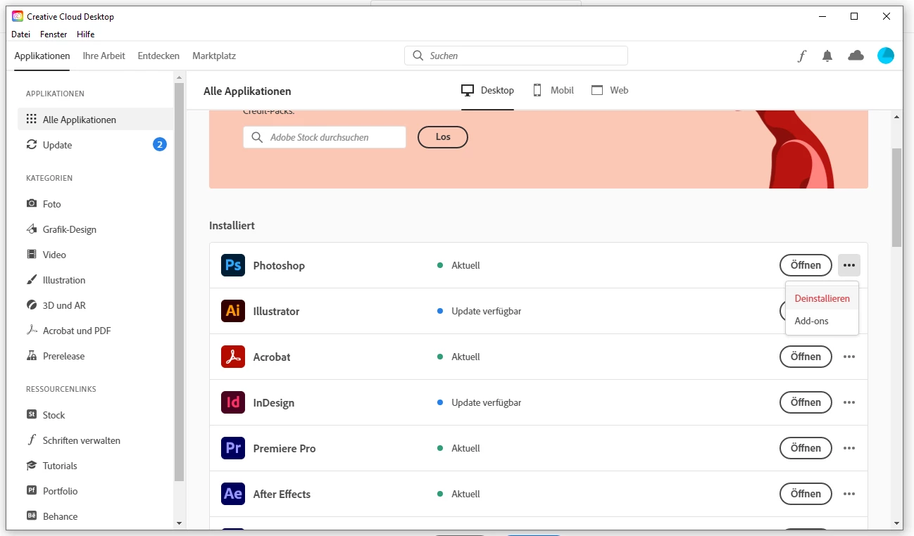I need to revert back to an older version of Photopshop as 26.1 does not support my Windows version anymore. However, there is no option for "other versions" available anymore in the context menu. There are only "delete" and "add ons" available. Any ideas why I cannot see the option "other versions" in all of the installed apps within Creative Cloud? I am running CC version 5.5.0.617.