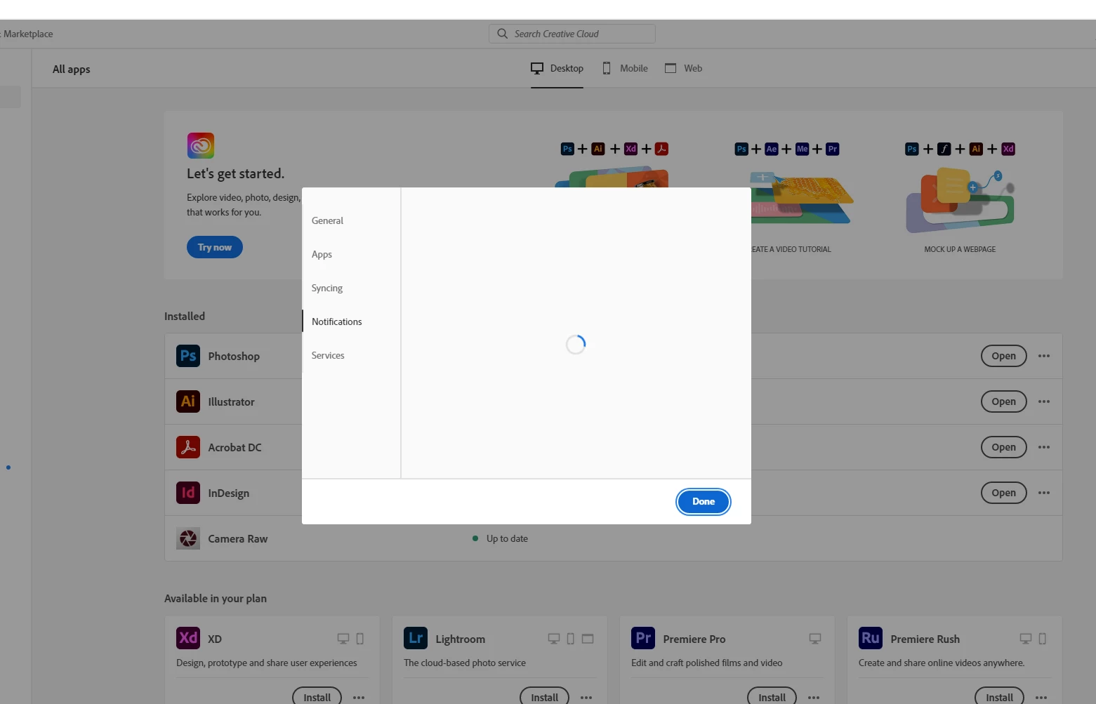 use the desktop app to install your cc programs/trials