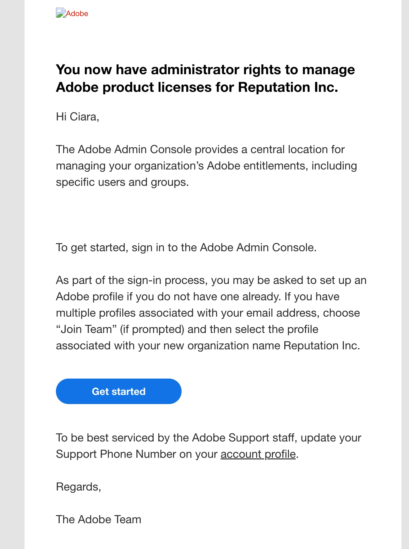 Additionally, after renewing my license, I received an email (screenshot attached) notifying me that I now have administrator rights to manage Adobe product licenses for my company. Could this change be related to the issue with my cloud files?