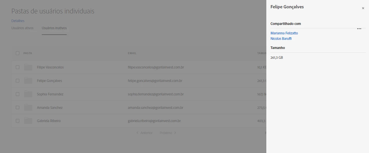 Estou com problemas para acessar alguns arquivos que estavam na conta de outro usuário. Hoje esse usuário está como inativo, porém os arquivos foram compartilhados com outros dois usuários ativos (anexo). O problema é que quando acessamos a parte de arquivos compartilhados da cloud eles não aparecem.