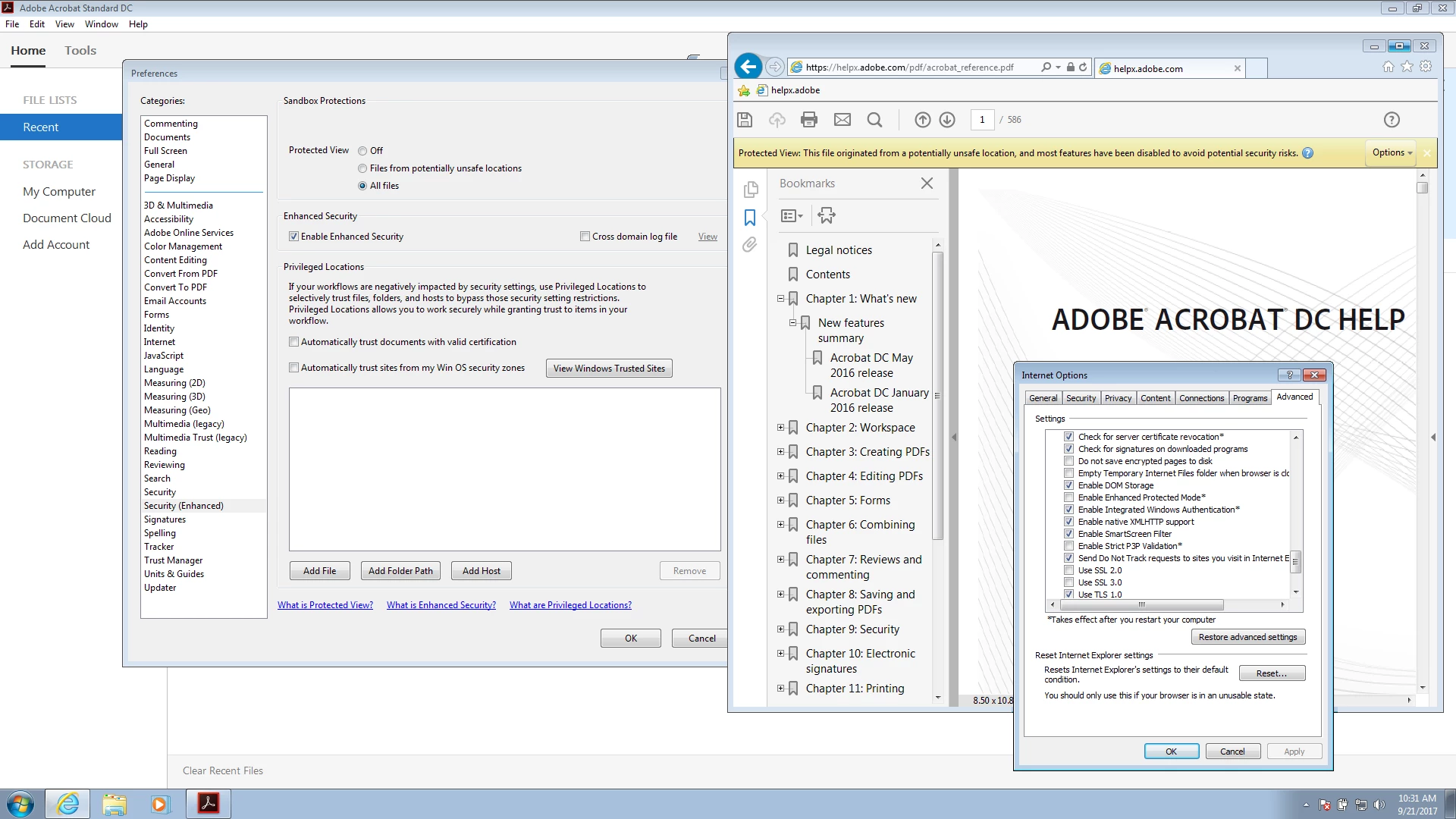 Protected View with Acrobat DC 2015 fails, in IE Enhanced Protected Mode?