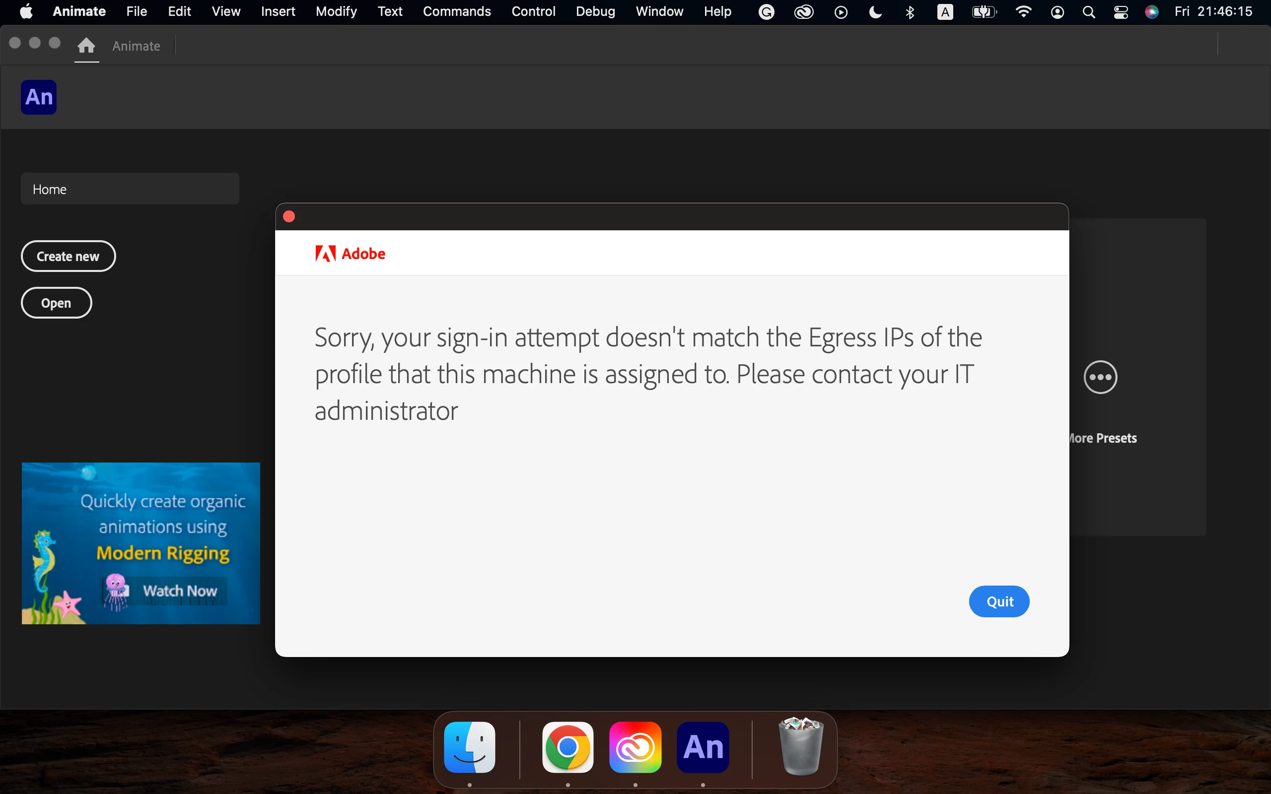 You should contact your Admin, who manages Adobe Admin Console, and share this info with him, including your IP details.