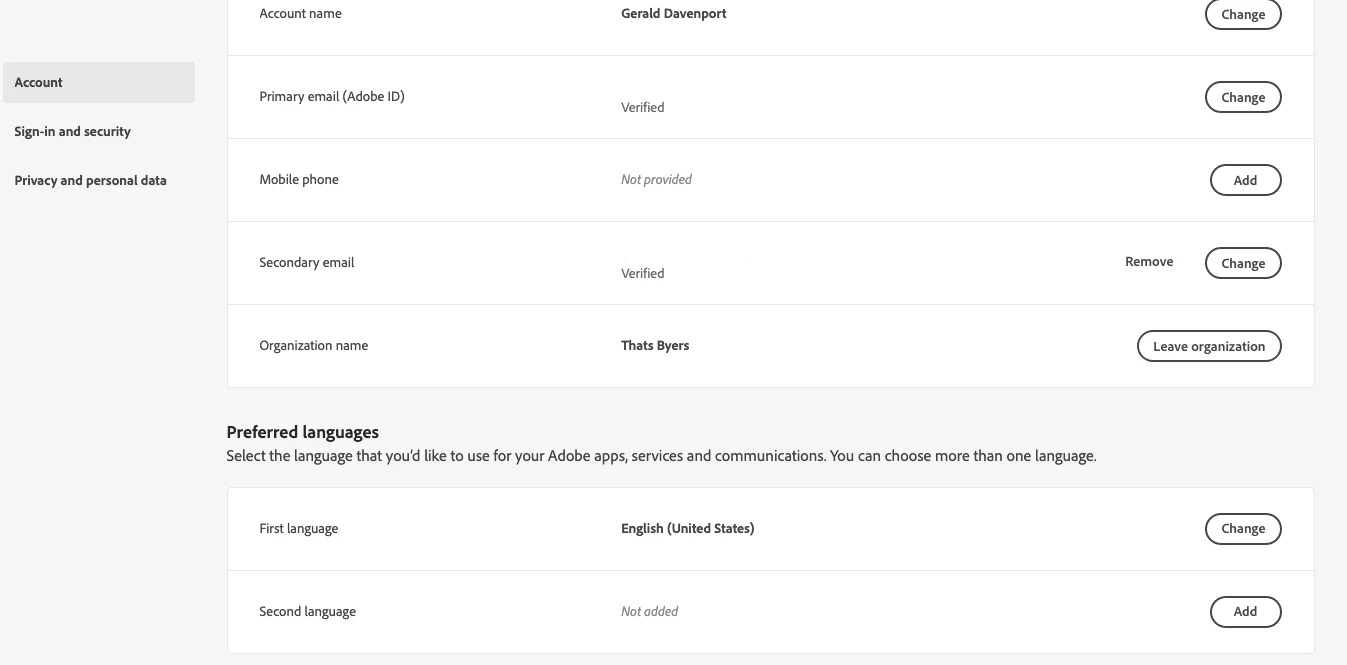 The standard, however, will be that you will have a company assigned e-mail address and on that address you will have your Adobe ID with the two layers. For the business ID, the data (library, Creative Cloud, Document Cloud) is controlled by your company.