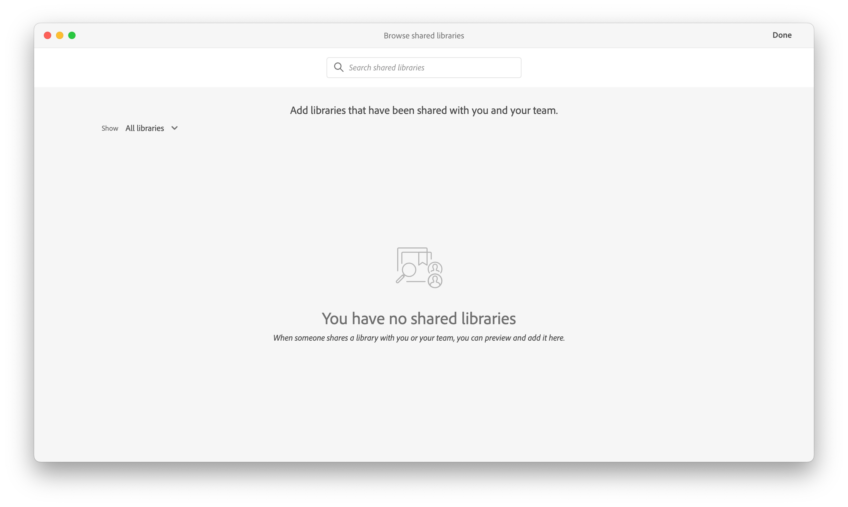 I recently joined a new company and the library they shared with me is not showing up. I received the email inviting me, clicked the "start collaborating" button and clicked on the notification to accept in the creative cloud app but no library is appearing anywhere. When my team members look at the list of members on the library it says my invitation is pending but I don't see anywhere else to accept it. Any ideas?