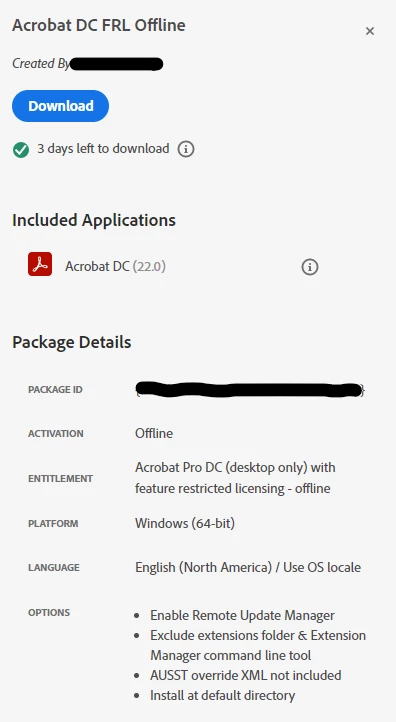 I have a deployment package for Acrobat DC, Feature Restricted Licensing (FRL), Offline Activation.