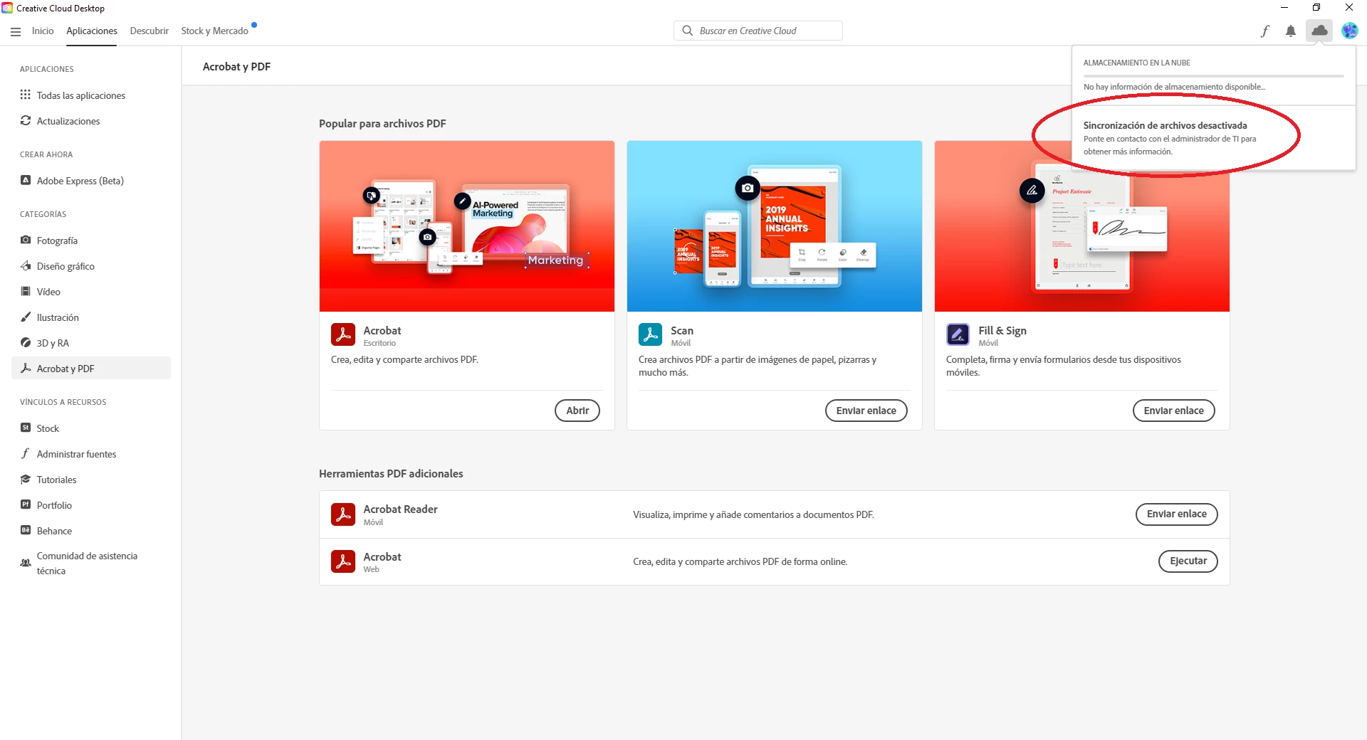 Buen día, al configurar mi paquete de Creative Cloud habilitando la sincronizacion de archivos e instalarlo en los equipos cliente aparece la leyenda "almacenamiento en la nube, sincronizacion de archivos desactivada, ponte en contacto con el administrador de TI" alguien sabe a que se debe este mensaje, ya intente crear el paquete creative cloud con todos los permisos posibles y ni asi se habilita la sincronizacion en la nube.