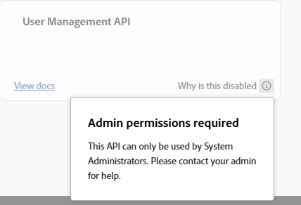 After checking, I can confirm that you currently do not have System Administrator access. At this time, the UMAPI can be added to the Adobe Developer Console only by users with System Administrator permissions, which is why the option isn’t appearing for you.