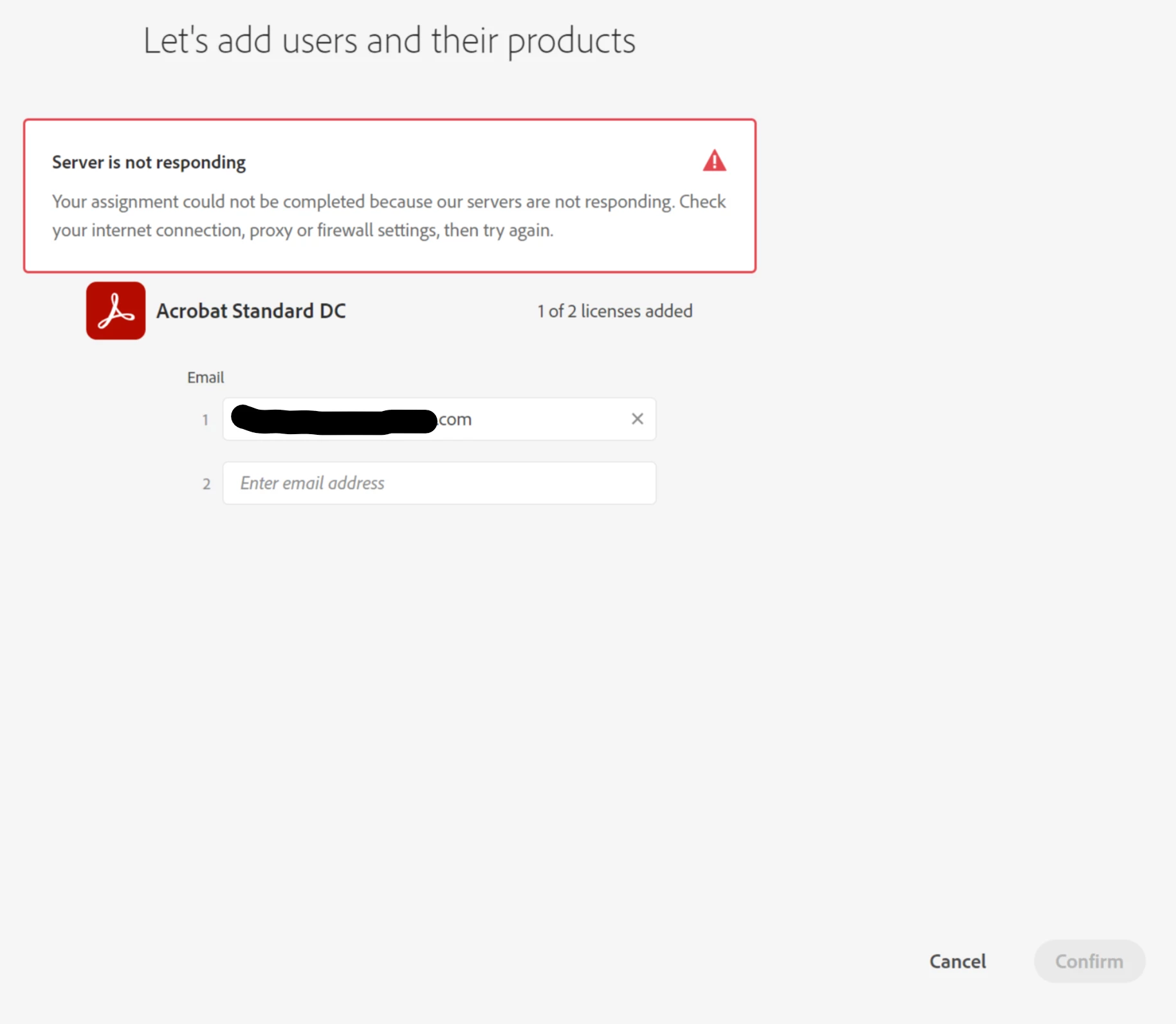 We are attempting to assign users to the Existing Adobe DC licenses in our ORG. but we have been unable to add anyone new for a while.