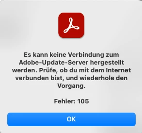 Unable to connect to the Adobe update server. Error 105