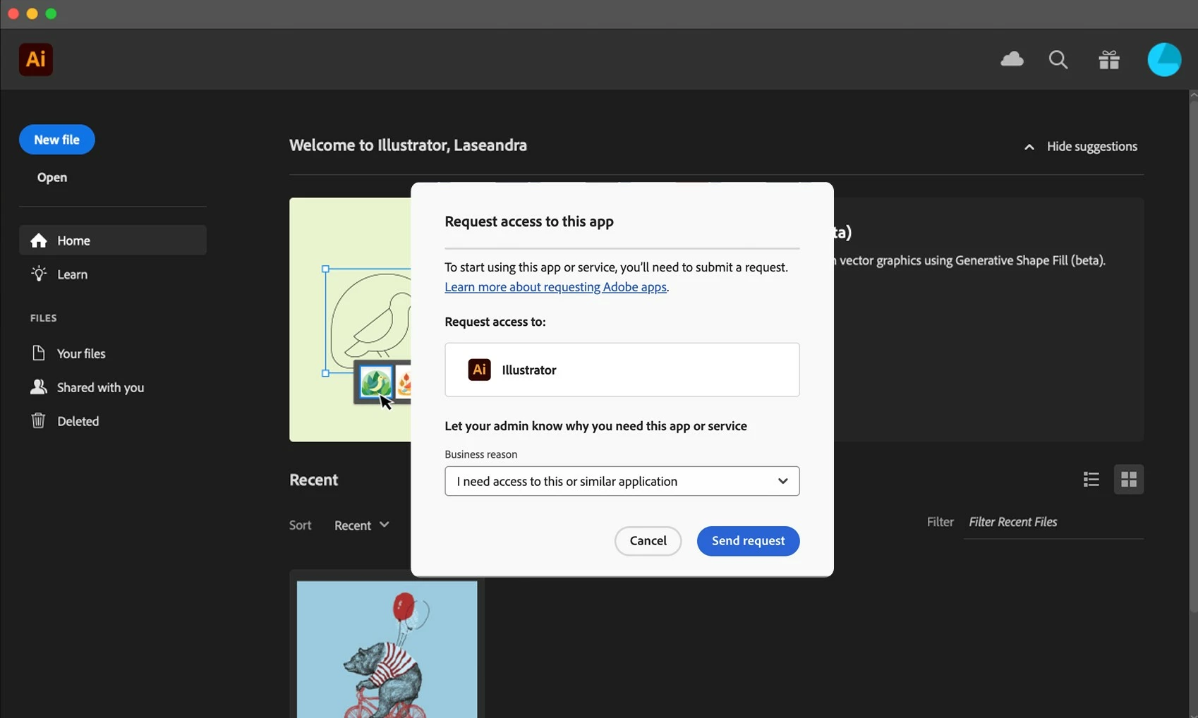 Enterprise users can now efficiently request access to applications they do not yet have permission for, directly through the Adobe desktop app they wish to utilize. This seamless process ensures they get the tools they need without delays or manual provisioning.