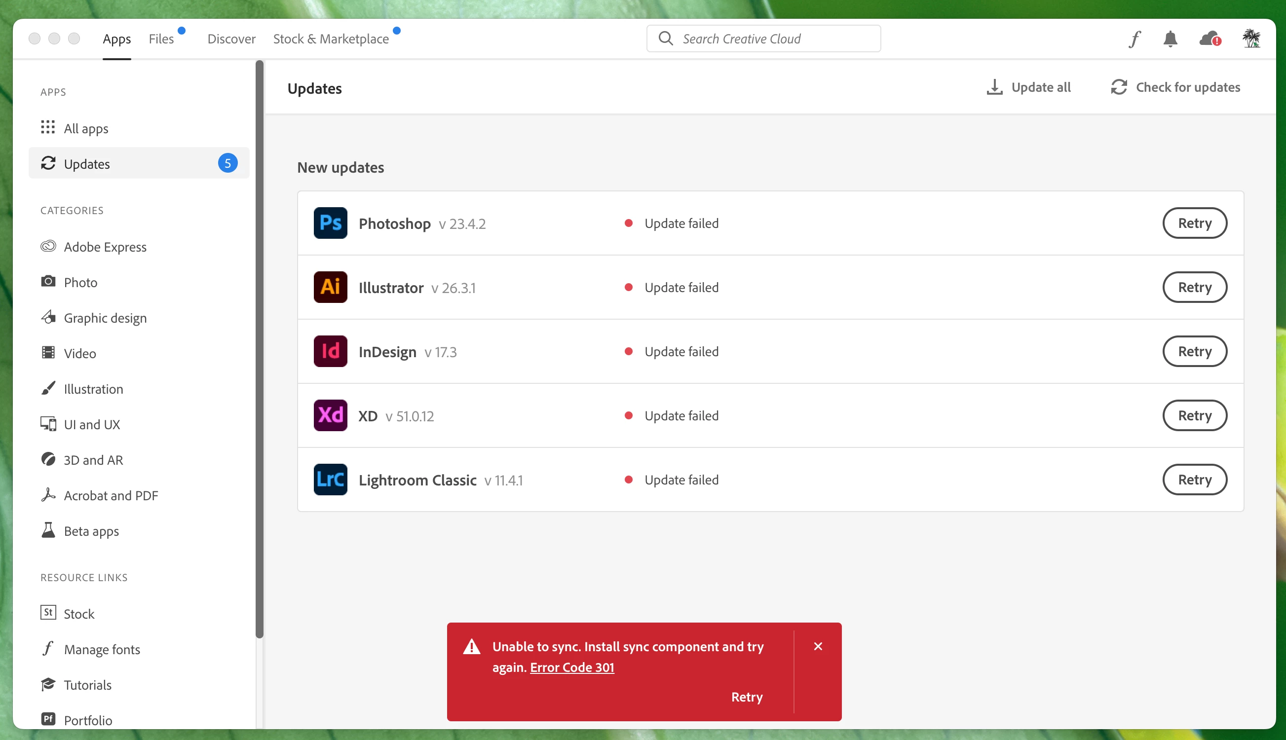 Updates Failed, Error Code 301