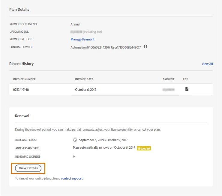 I have reviewed the Adobe ID you have utilized to post here and found that you have a Creative Cloud for team subscription, to review the details of your renewal, in the Admin Console, navigate to Account. Under Renewal, click View Details.