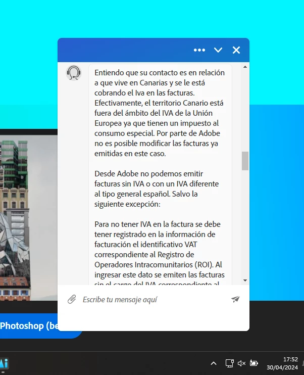 FFabio35329957gzclParticipantForum|Forum|1 year agoApril 30, 2024QuestionVERGUENZA: Me obligan a pagar IVA y no me dejan cancelar la suscripciónForum|Forum|1 year agoApril 30, 20241 reply161 viewsLicensingTroubleshootingManage account