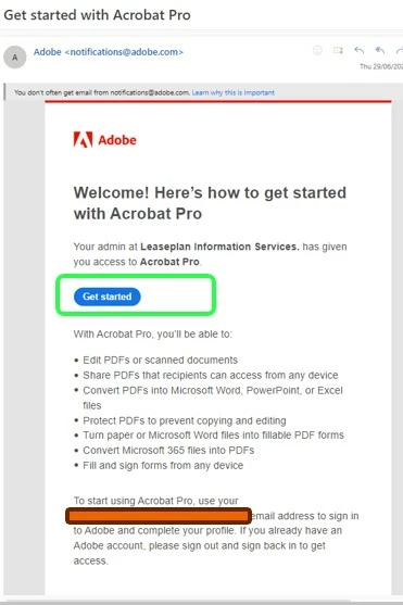 When using teh "Get Started" link in the mail , they are routed to login/create account with email already populated.