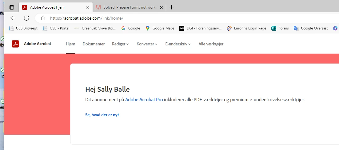 I allready have Adope Acrobat Pro - but every time I klik on the Tool "Prepare Form" a new screen show with "Try or Buy Adope Acrobat Pro"