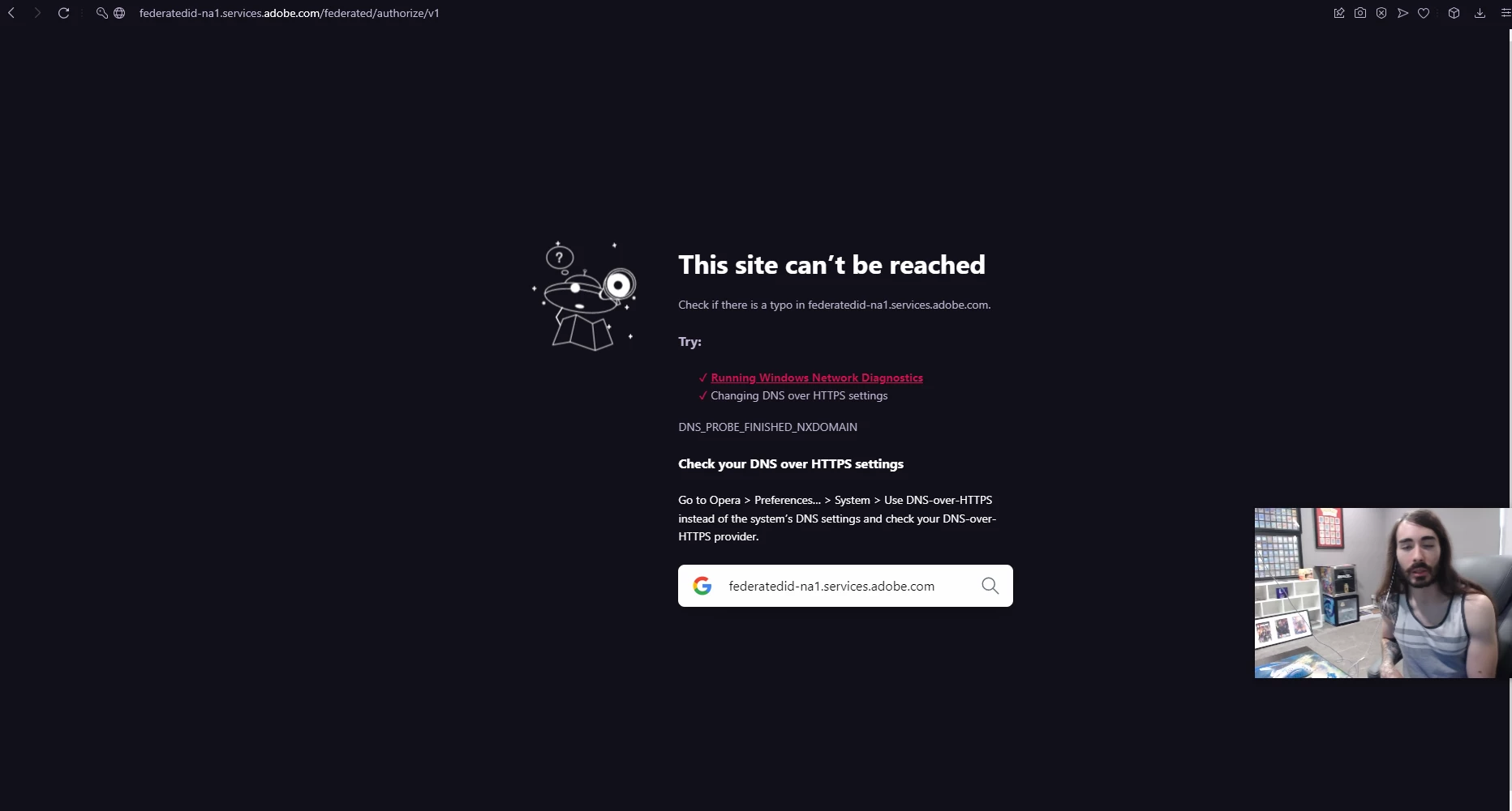 So, the title sums it up. Whenever I try to log into my school email I get "Check if there is a typo in federatedid-na1.services.adobe.com.". For reference, this is my personal computer and my laptop is a school laptop that I do own, however, I only use it for school. duh lol. :3