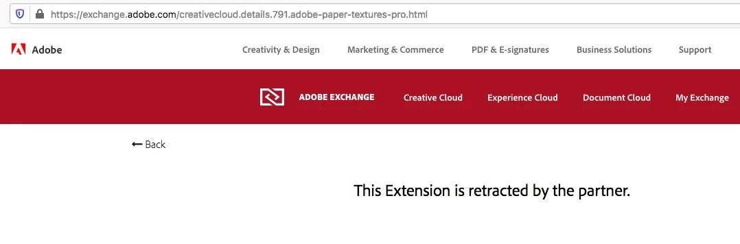 For example, if you go to the link for the Adobe Paper Textures Pro you get This Extension is retracted by the partner.