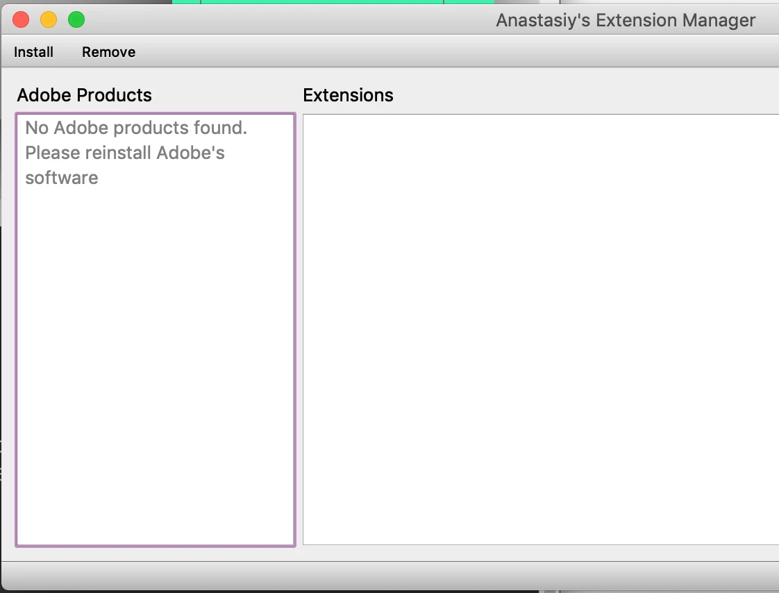 I've tried Anastasiy, which shows an error: "No Adobe products found. Please reinstall Adobe's software".