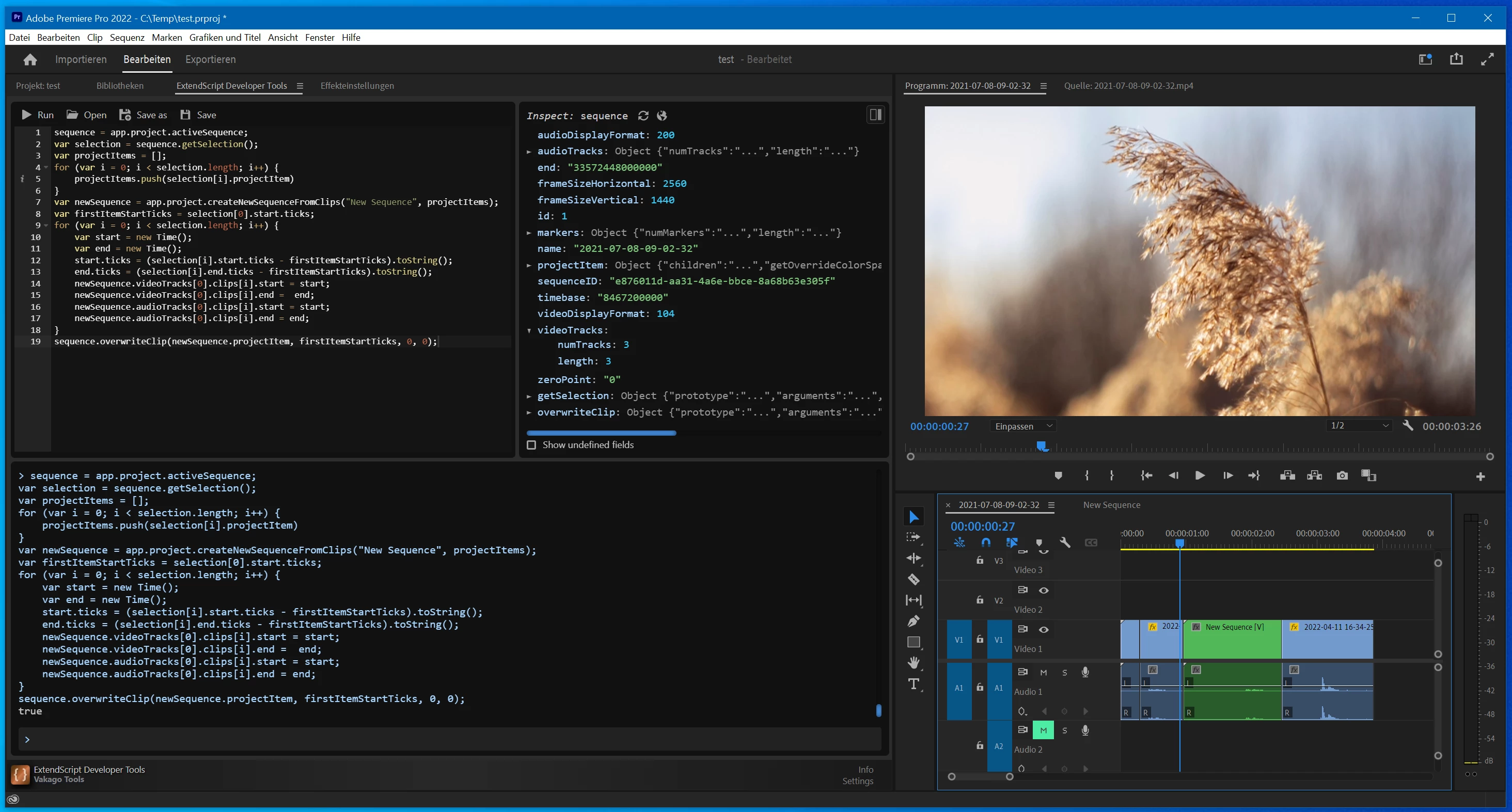 I'm wondering about if how I'd go about creating a sequence with some clips from the active sequence with ExtendScript.