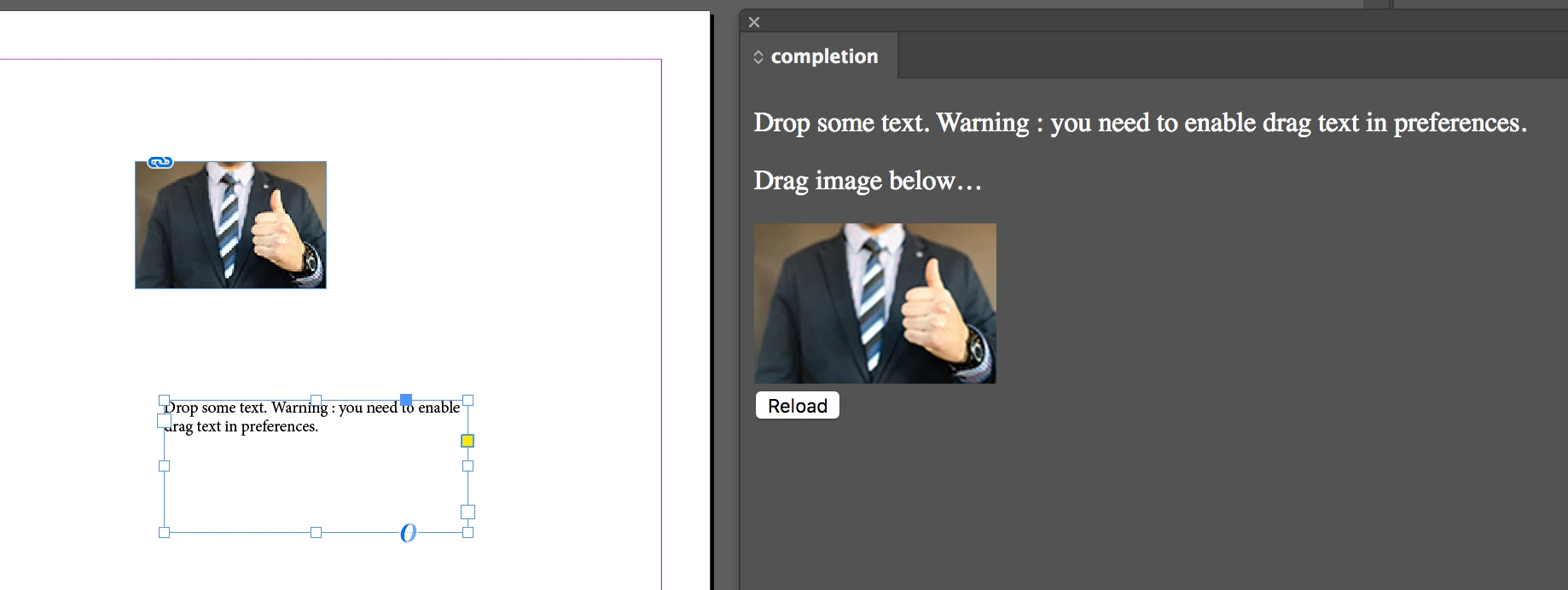 I created a HTML5 addon/extension for Adobe Indesign by using extension builder 3. For drag and drop image and text from extension to Indesign document. But when drag and drop images on the document, it shows path of image not the image itself. Also not able to drop the text.