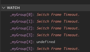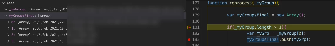 The content of the variables are swapped between the local view and the watch ( _myGroup < - > myGroupsFinal. The content of a variable is not always displayed correctly and is not reliable
