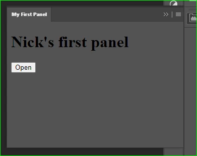 The panel displays correctly in Photoshop, but the Open button is not responding.