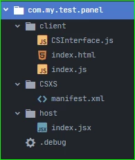 Here is my file structure at AppData\Roaming\Adobe\CEP\extensions\com.my.test.panel.