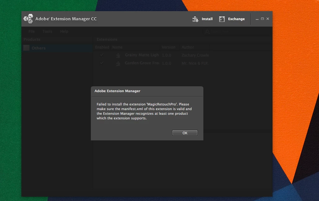 i'm unable to install .zxp file in photoshop cc