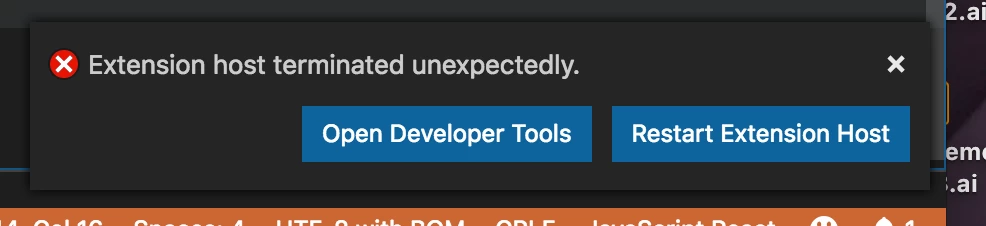 I've been making the transition to VS Code from ESTK, and have got things running, but I am finding the extension breaks often and I have to restart the host frequently. I'm wondering if other users are experiencing this. I'm no expert on VS Code, that's for sure, so I'm not sure if certain setting affect the performance of the extension. I'm getting "Extension host terminated unexpectedly" and "'${file}' can not be resolved."