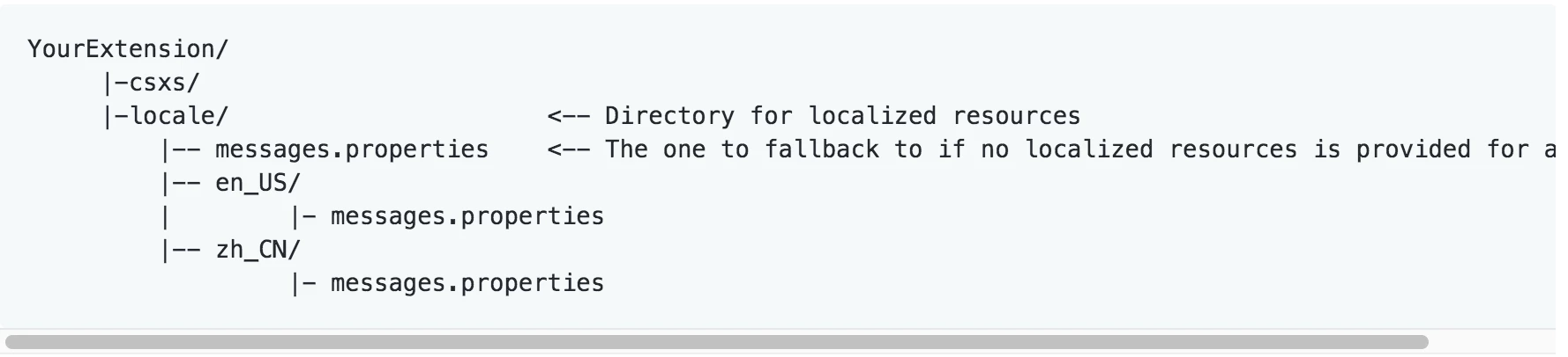 | What I will put in those folders, an js file that that leads the extension to use the right files according to the language the user uses. |