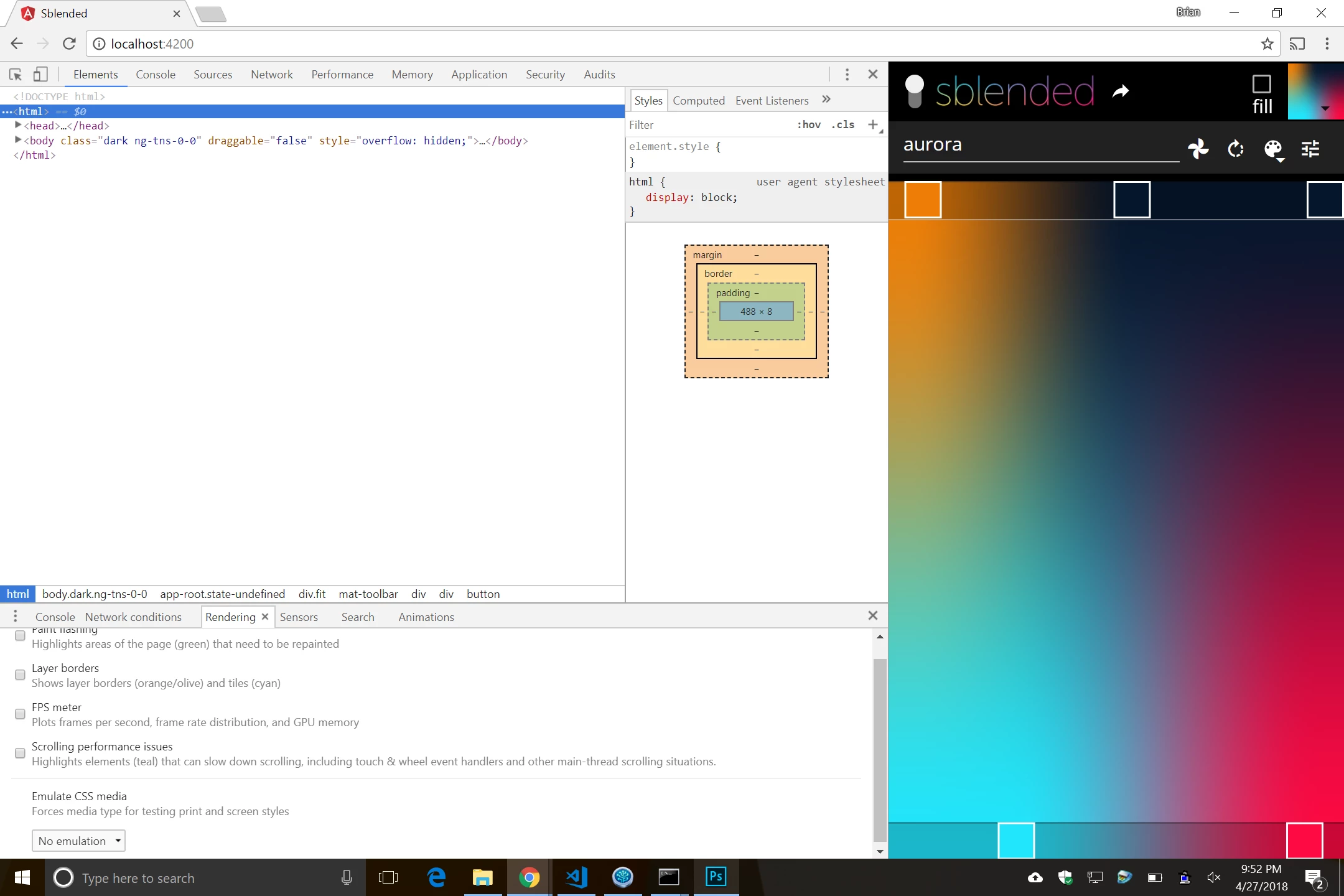 Hi. It appears there is some sort of scaling being applied to the panel content within CEP. Note the difference between the two screenshots below. The first is running within Chrome 65. The second is the same content running within Photoshop. Looks to me like device / viewport emulation in the CEP panel. I double-checked that Chrome was set to 100% zoom. The screenshots were taken on a Surface Pro 3.