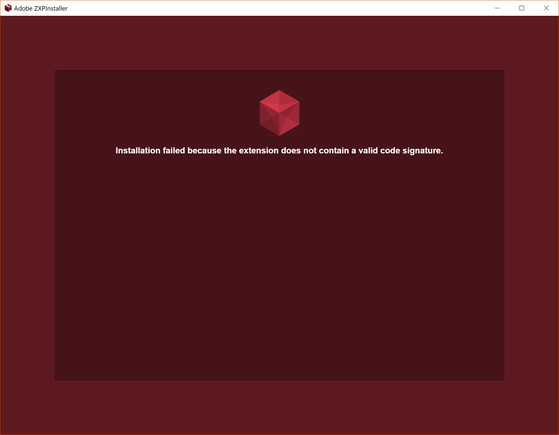 I packaged a ZXP extension with ZXPSignCmd (self-signed certificate).