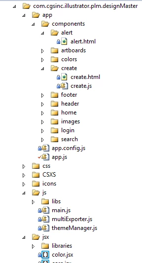 The following images depicts the folder structure of adobe cep illustrator extension panel which i have designed.