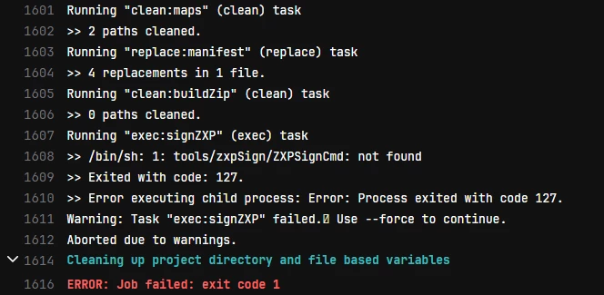 Im creating CI/CD pipeline for build the CEP panel and then do the deployment. But Im facing error like,