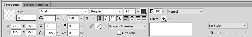 Once your text is selected, from the property inspector you have access to these settings. This is the setting currently represented by a pencil, with the color well set to transparent.