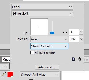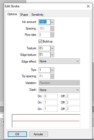 This new nested dialog box, allows you to act on advanced options, as well as the shape, or the sensitivity.