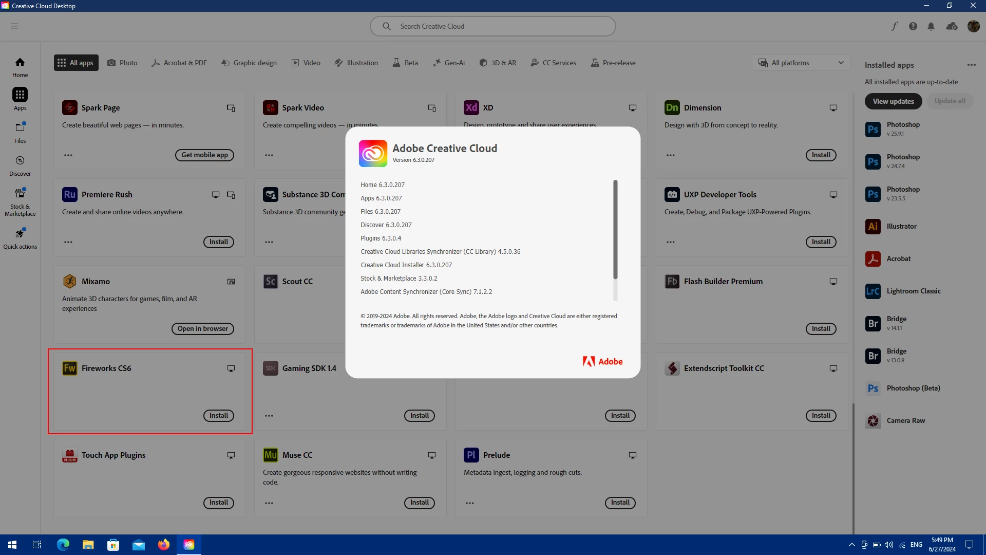 Fireworks has been discontinued and is no longer available from your Creative Cloud Desktop App.