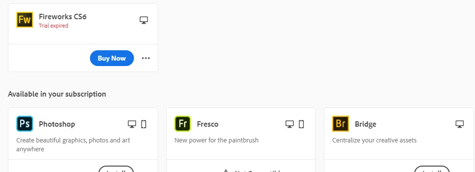 Fireworks suddenly requires a subscription - despite an active Creative Cloud subscription