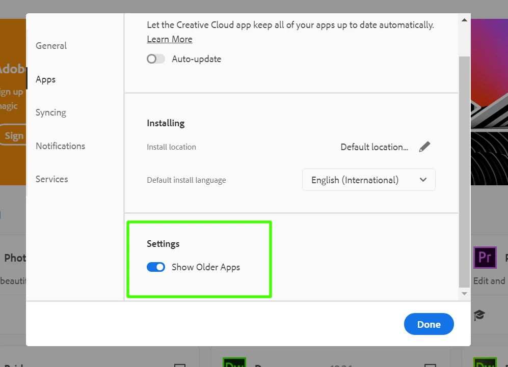 Hi - do you have a full Creative Cloud subscription? In the creative cloud app > preferences you need to make sure 'show older apps' is checked