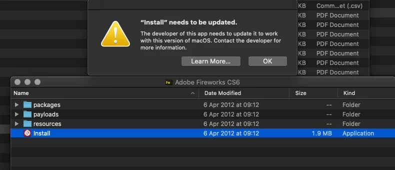 Not able to install Fireworks and InDesign after new Mac OS update (Catalina)