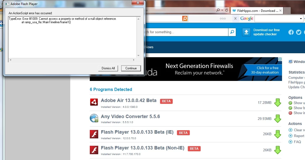 Adobe Flash Player. I keep getting " An ActionScript error has occurred: