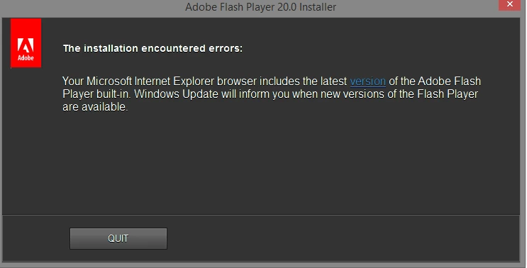 I've been trying to roll back my flash player because the latest update is causing issues with my screen saver (Fliqlo). I did a clean install (used the uninstaller & manually deleted any left over files) & got it working for my other browsers but any time I try to install it for IE it won't. I'm trying to install version 20.0.0.228 & every time I click the winax.exe installer for IE, I get this error: