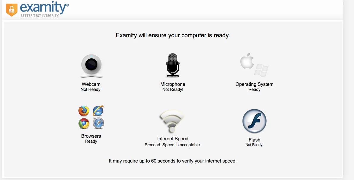 I am taking an online class and I am trying to be approved for taking the test at home since I live far from my university. However I am testing out the required software, Examity, and it says my adobe flash isn't plugged in, as well as my camera and microphone. I just installed flash again but it still says it is not plugged in. How do I activate all three of these? Thanks!