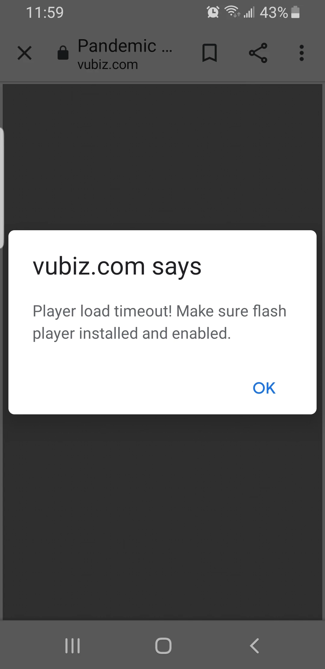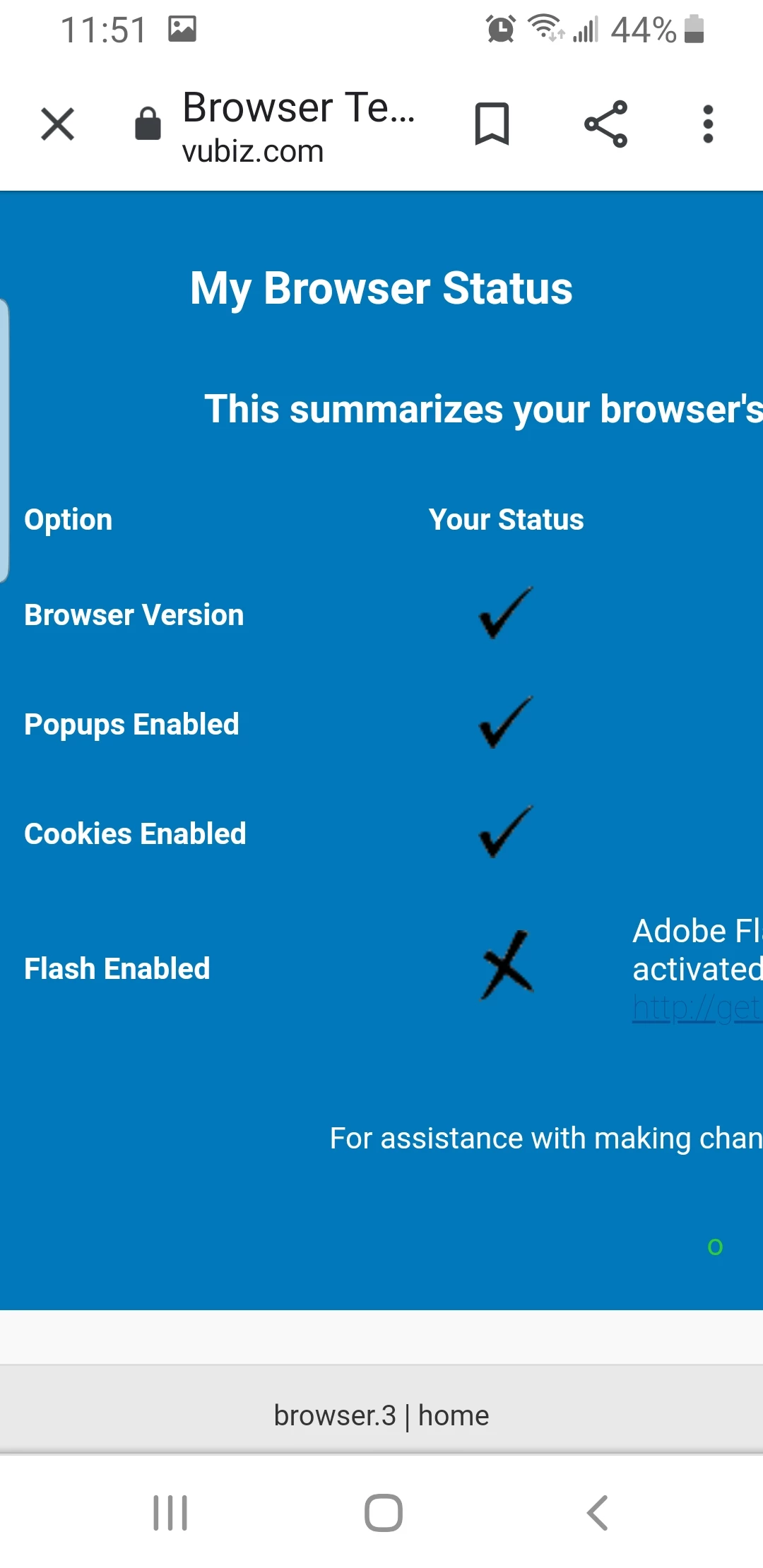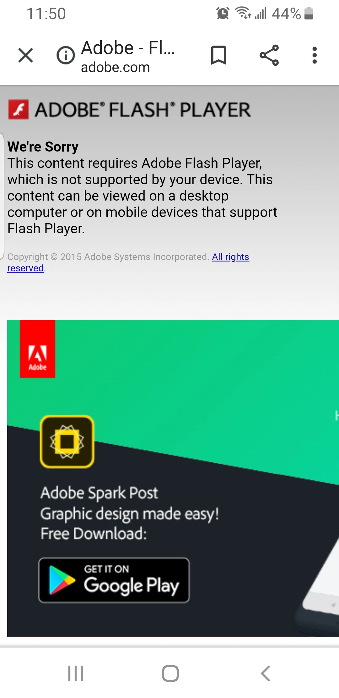 Adobe flash on my cell Samsung S8 was working before and now not able to open on work book