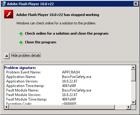 Adobe Flash Player 10.0 r22 has stopped working